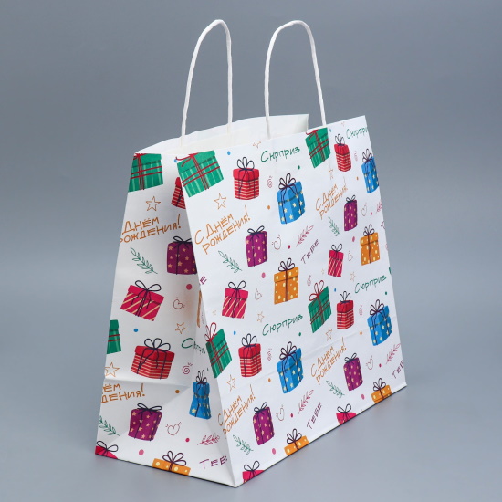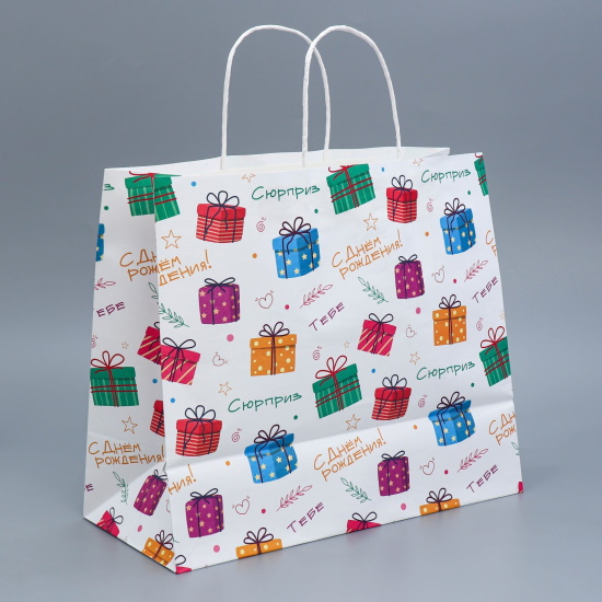 Пакет крафтовый Подарки 32 × 28 × 15 см