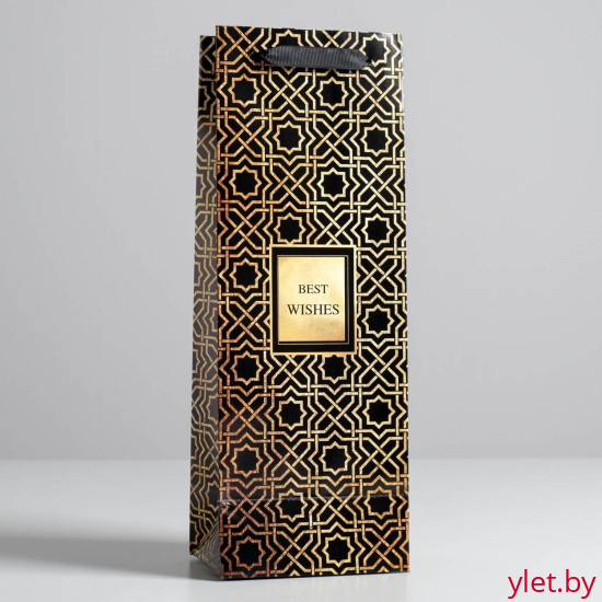 Пакет ламинированный под бутылку Best wishes, 13 x 36 x 10 см