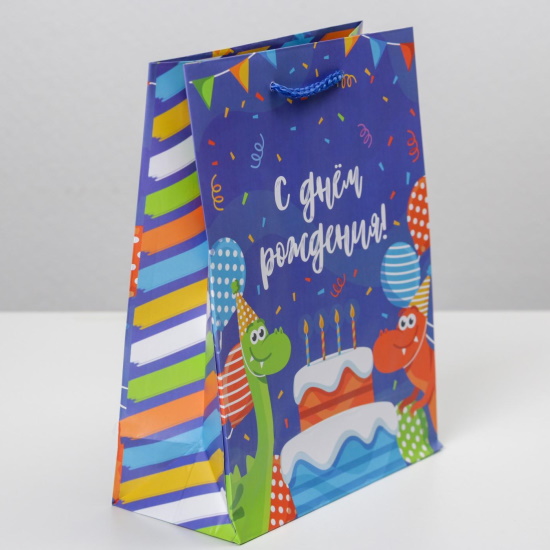 Пакет ламинированный Праздничные динозаврики 18 х 23 х 8 см