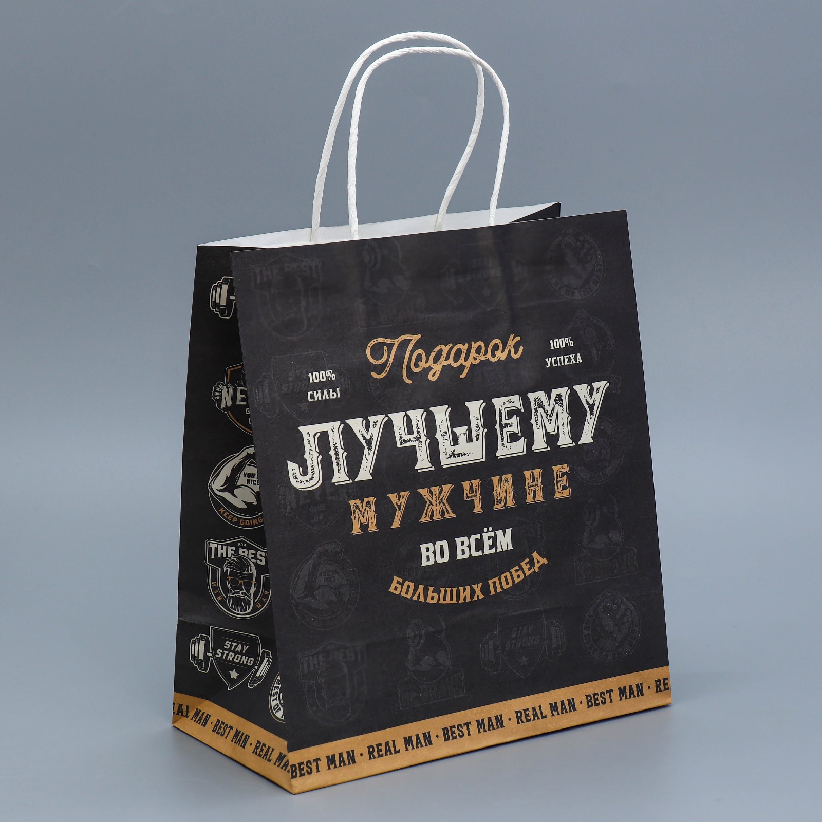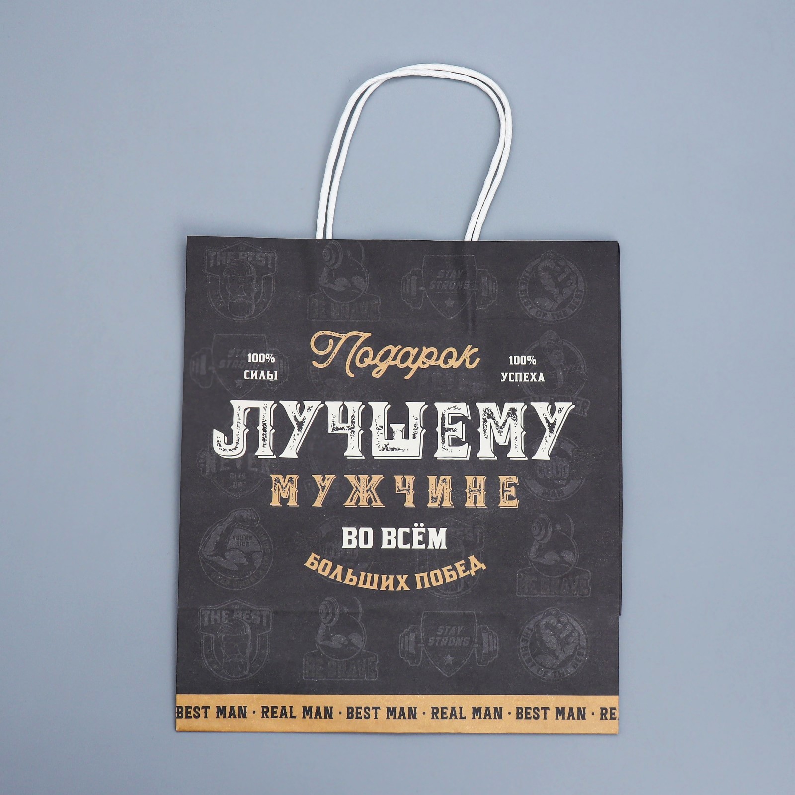 Пакет подарочный крафтовый, упаковка, «Настоящему мужчине», 22 х 25 х 12 см