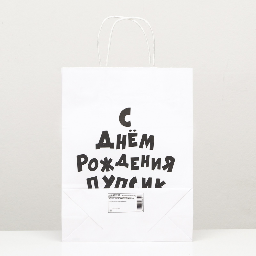 Пакет подарочный с приколами, Пупсик, белый, 24 х 10.5 х 32 см