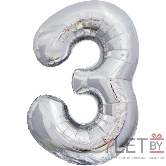 Шар (34''/86 см) Цифра, 3, Серебро