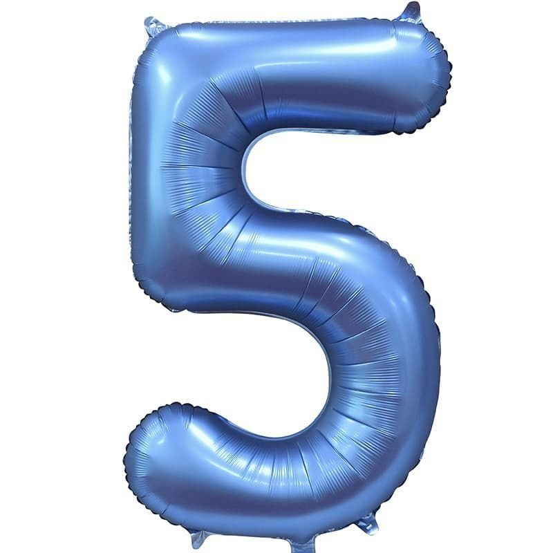 Шар (34''/86 см) Цифра, 5, Синий сатин