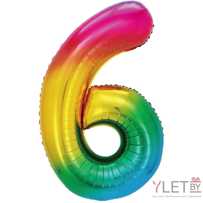 Шар (40''/102 см) Цифра, 6, Радужный, Градиент