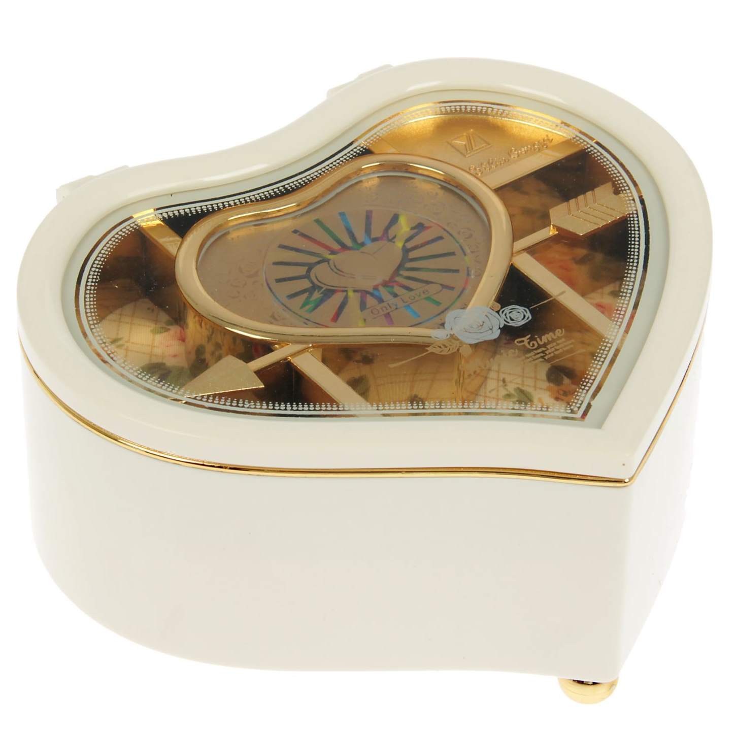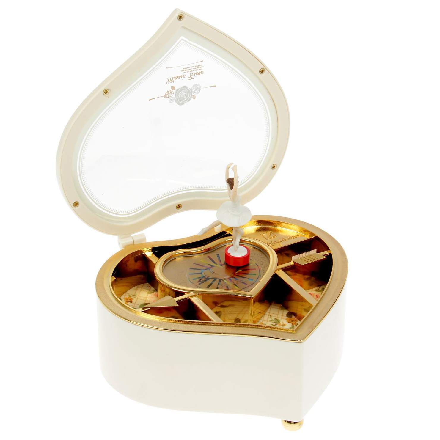Шкатулка музыкальная с танцующей балериной Сердце белое механическая
