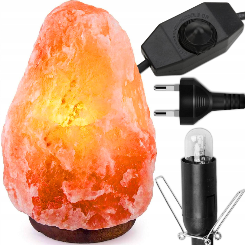 Лампа солевая представляет собой цельную глыбу каменной соли. В высверленное в куске соли отверстие вставляется лампочка, под действием тепла соль излучает отрицательные ионы, выступая в роли природного ионизатора. Срок действия неограниченный, главное не мочить и не разбить.