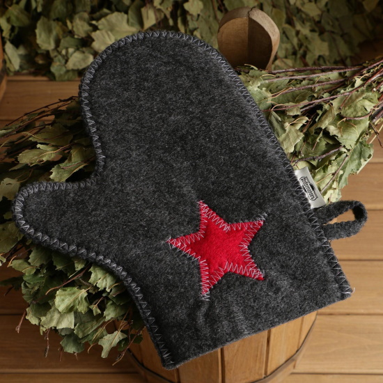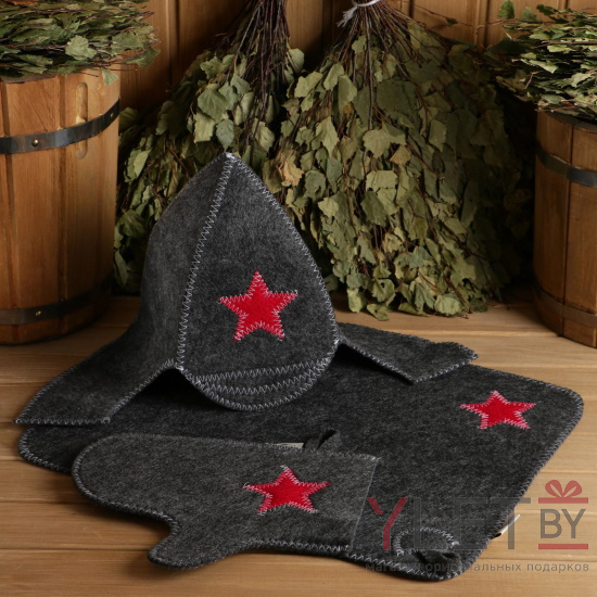 Набор для бани Буденовец. Шапка, коврик, рукавица. Серый