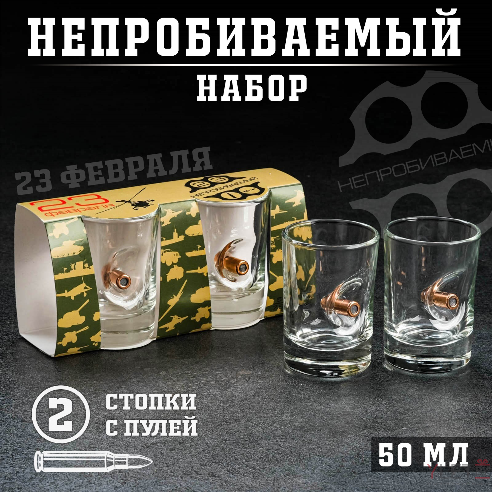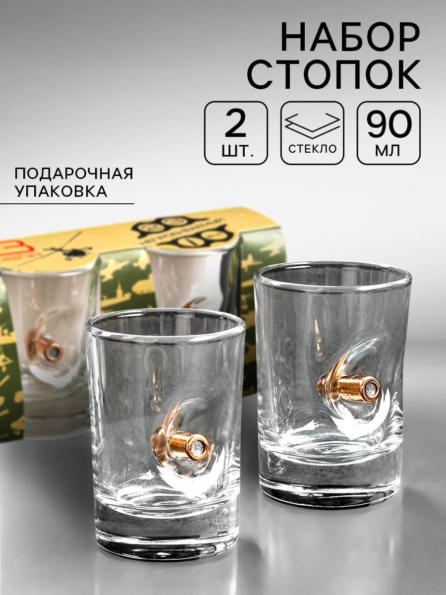 Стопки непробиваемые с пулей «С 23 февраля», 2 шт., 50 мл
