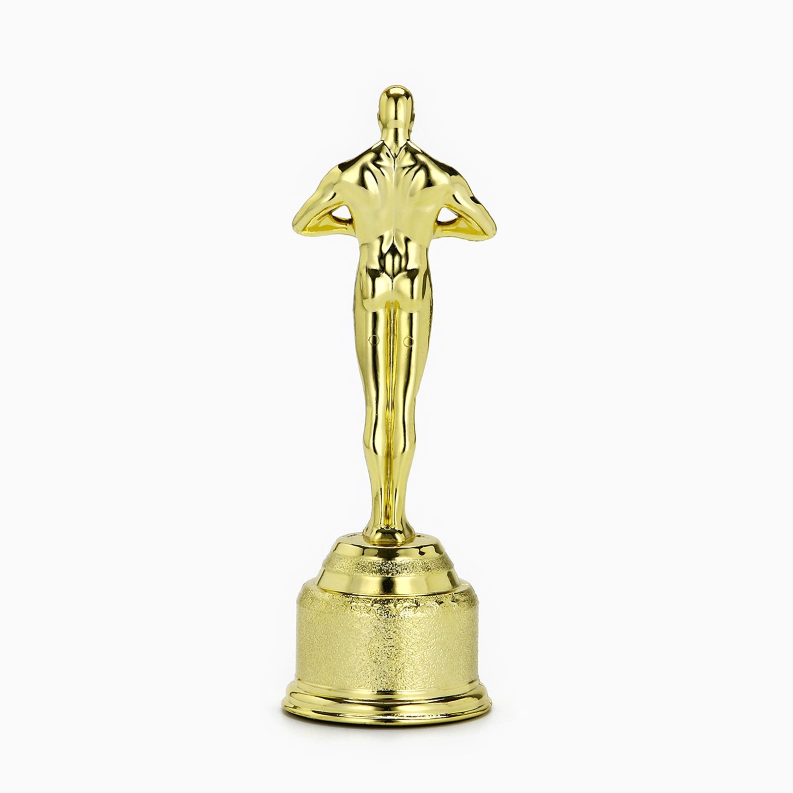 Эта золотистая фигура в форме знаменитой статуэтки "Оскар" с лавровым венком в руках выполнена из качественного пластика, что делает ее легкой и прочной. Устойчивый постамент с ярким голографическим шильдом с надписью «Лучший папа в мире» подчеркивает индивидуальность награды и добавляет эффектности.