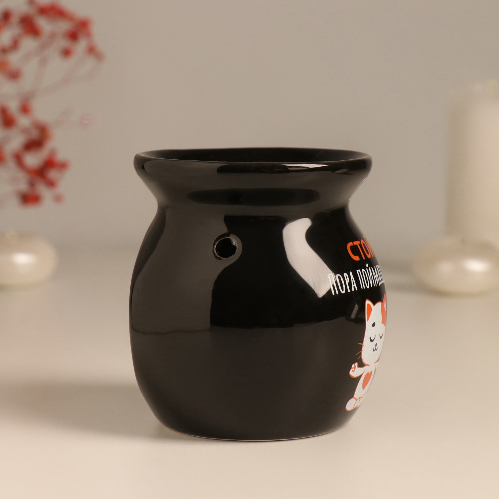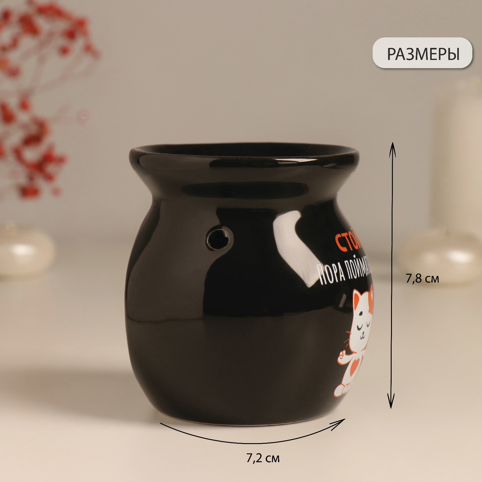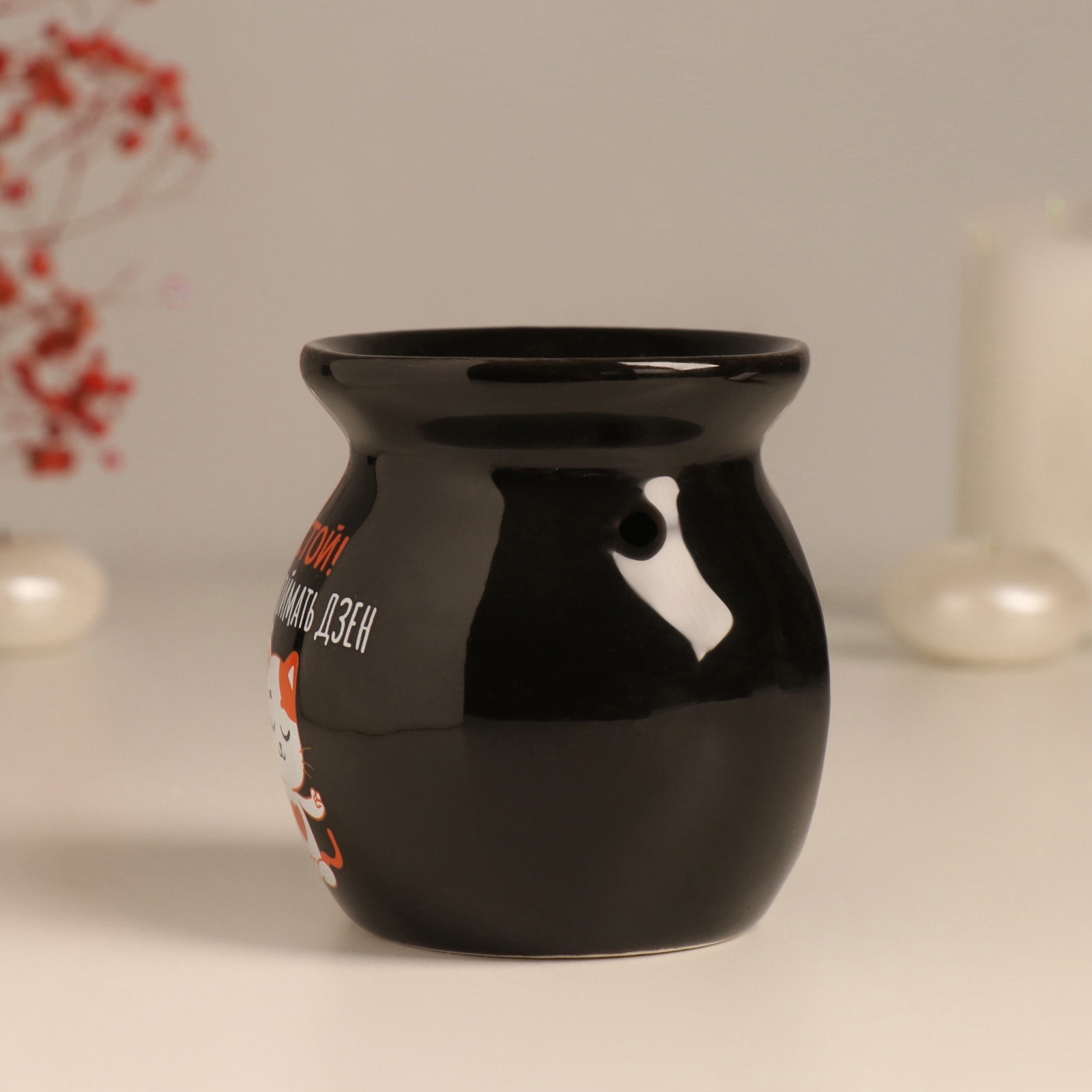Аромалампа керамика "Стой! Пора поймать дзен" чёрная 7,2х7,2х7,8 см