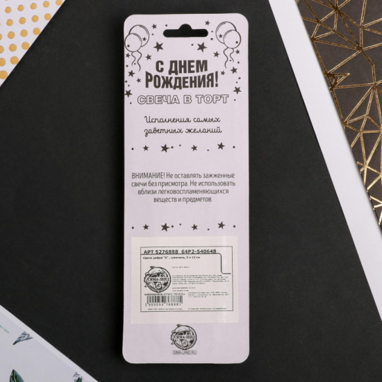 Свеча в торт цифра 6, Шампань