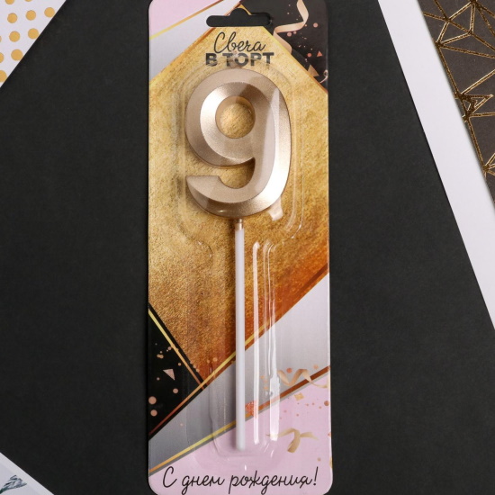 Свеча в торт Цифра 9 Шампань