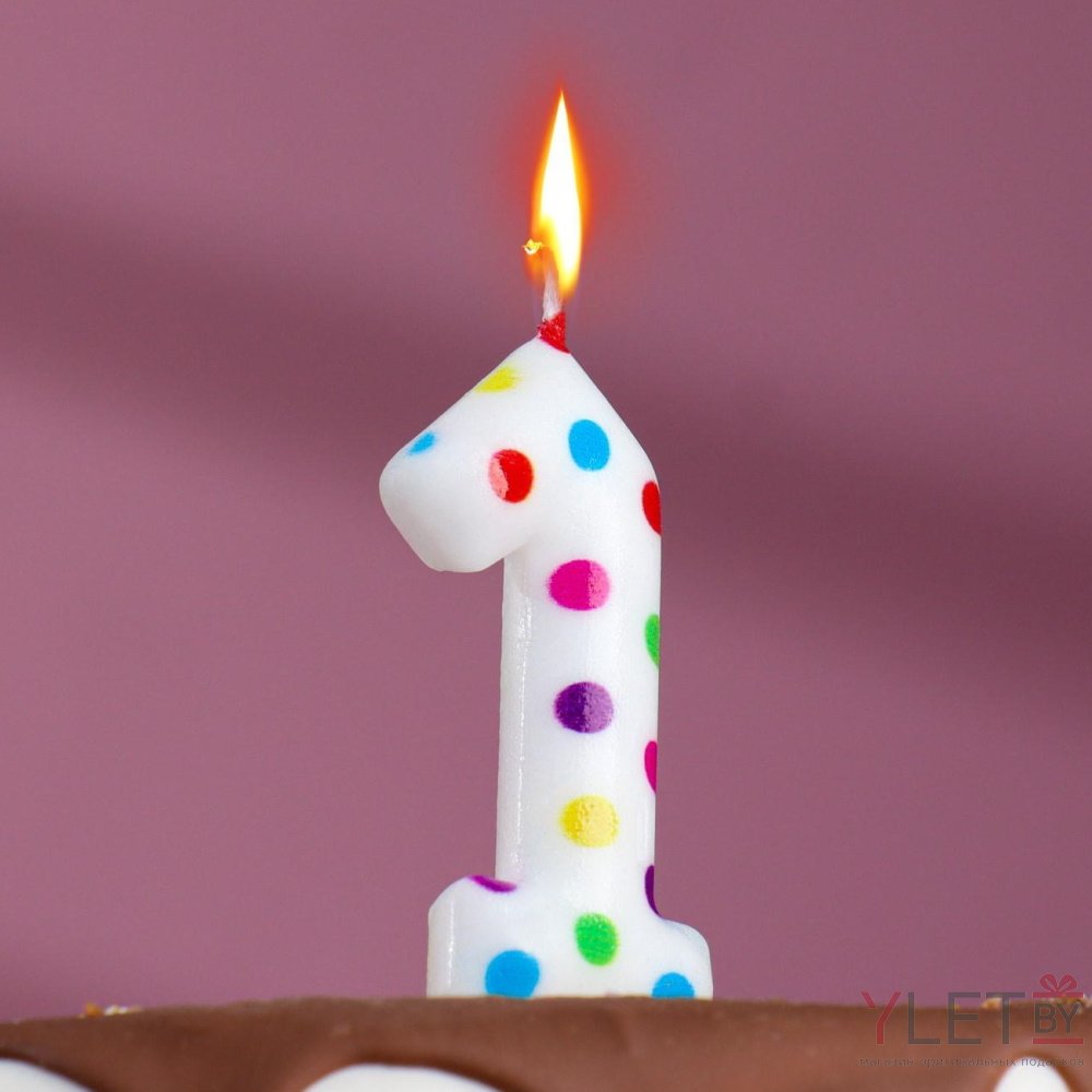 Свеча в торт Цветное конфетти, Цифра 1