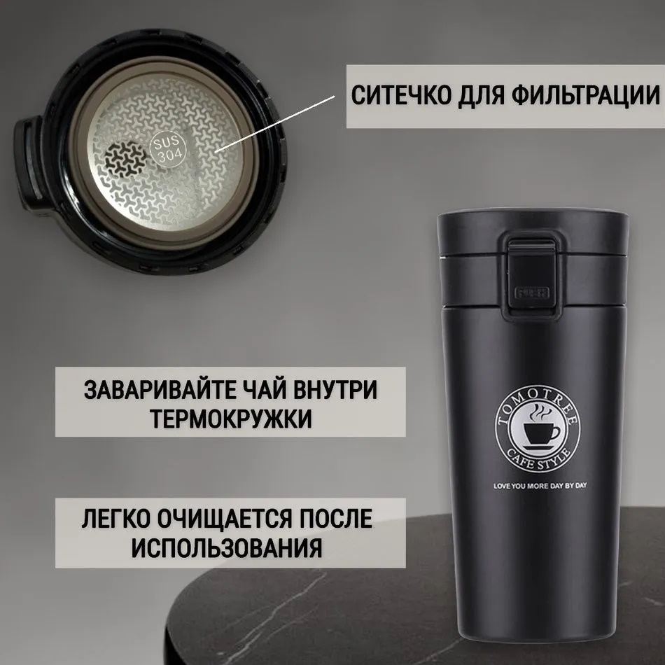 - Термокружка непротекающая для кофе и чая изготовлена из медицинской нержавеющей стали 304 уровня
